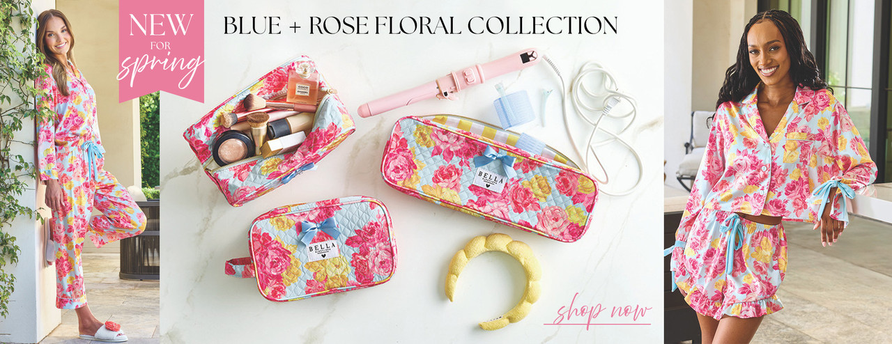 Short Sleeve Top + Square Short PJ Set with Velvet Tie - Blue Gingham + Red Roses